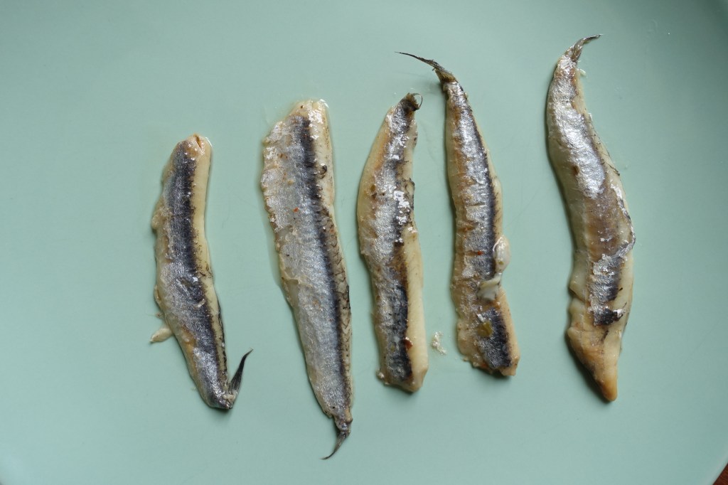 Vi får servert tynne skiver rød tunfisk med intens unami smak.