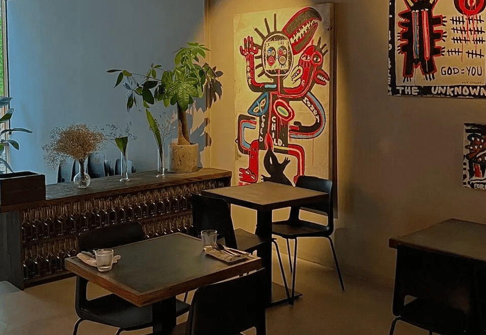 Nye Betong er hipt som faen, ingen tvil om det. Arkitekturen er langt på vei brutalistisk. Grått på grått på grått. Kjøkkenløsningen er åpen. Moderne kunst henger på veggene. Dassen er nedtægget. Det er et romslig og fett lokale.