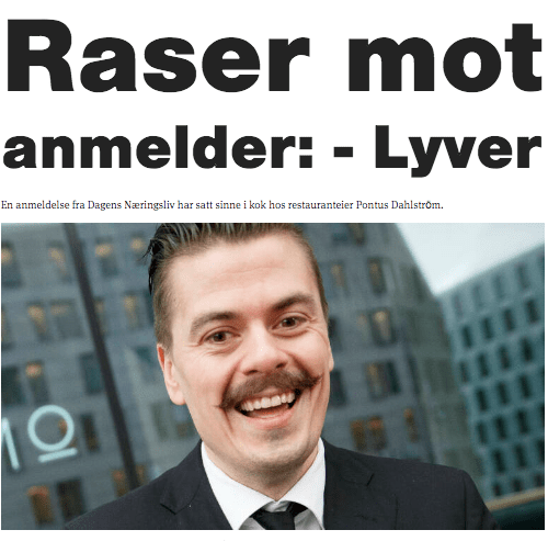 Mannen hun referte til, var Kolonialen Bisletts Pontus Dahlström. Etter å ha mottatt den lunkne karakteren FIRE av Salt og Pepper, publiserte kokken et heseblesende innlegg på Instagram der han rent ut refset anmelderiet i DN.