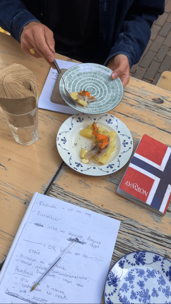 Forresten: Takk for komplimentet. Det er det jeg ønsker å inspirere deltakerne til. Å sette ord på sanseopplevelsene. Eller sette ord på hva som setter i gang inntrykkene hos dem. Det er litt forbudt her i Norge. Stikke nesa for dypt i vinglasset, liksom. Vi er streite, og sjenerte. Dette er så innarbeidet i oss at vi ikke tenker over det en gang. Alle husene skal ha samme farge, garasjene skal være like store, og hvis vi snakker for mye om sanseopplevelser, så blir det noe parodisk over det.