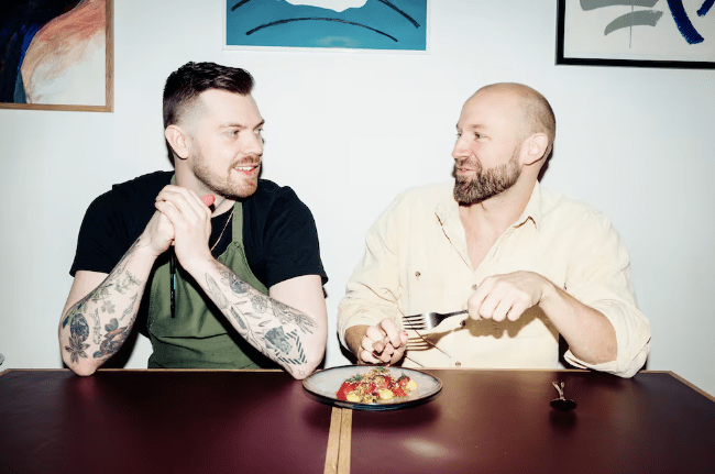 – Det trenger det ikke være så dyrt å spise ute, sier Victor Ramn (til høyre(. han driver bistroen Osloslo på Youngstorget sammen med kokk Eskil Ottestad. (Sindre Deschington)