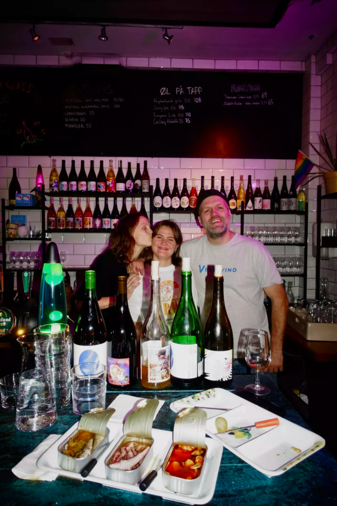 Når jeg besøker baren en sen torsdagskveld, blir jeg tatt varmt imot av de tre eierne, som selv sitter i baren og koser seg med boksemat: Cathrine Talleraas, Adrian Talleraas og Mari Sørensen – to bergensere og en oslobo med en forkjærlighet for sær vin, lavbudsjett og nabolagsstemning.