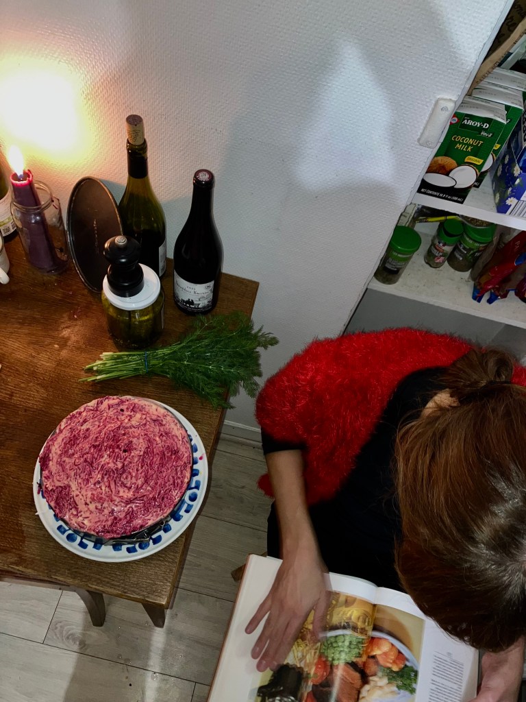 Ettersom alle er blakke, blir det mye kokkelering hjemme. Forleden inviterte de en russisk kompis som jobbet som kokk. På menyen sto georgianske dumplings og en russisk salat med det morsomme navnet sild under pelsjakke. Det var godt, men enkelt. Jeg dristet meg til å spørre om de ikke drømte om å spise ute på restaurant en gang i blant? De rister på hodet. Å få leve i Paris er drømmen i seg selv.
